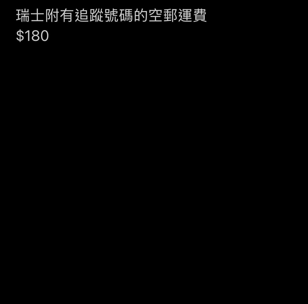 瑞士附有追蹤號碼的空運郵費 請留意實際收費可能有偏差,如有差額產生,我們不會退還款項,謝謝。